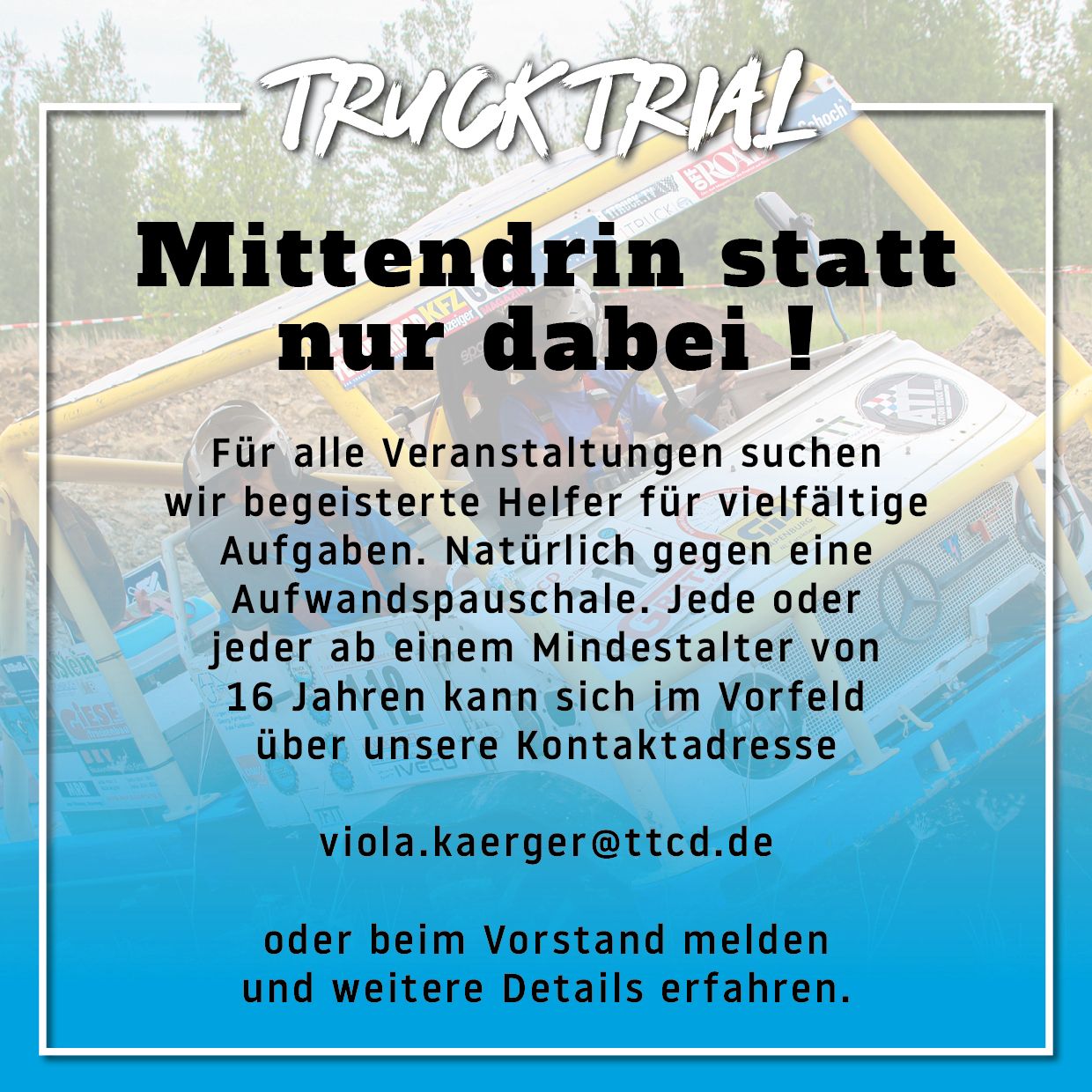 TTCD Truck Trial Club Deutschland e.V. im DMV ist ein gemeinnütziger Verein dessen Ziel es ist, Personen die ideelle Ziele des Motorsports verfolgen und Spaß am Motorsport haben, zu vereinigen.